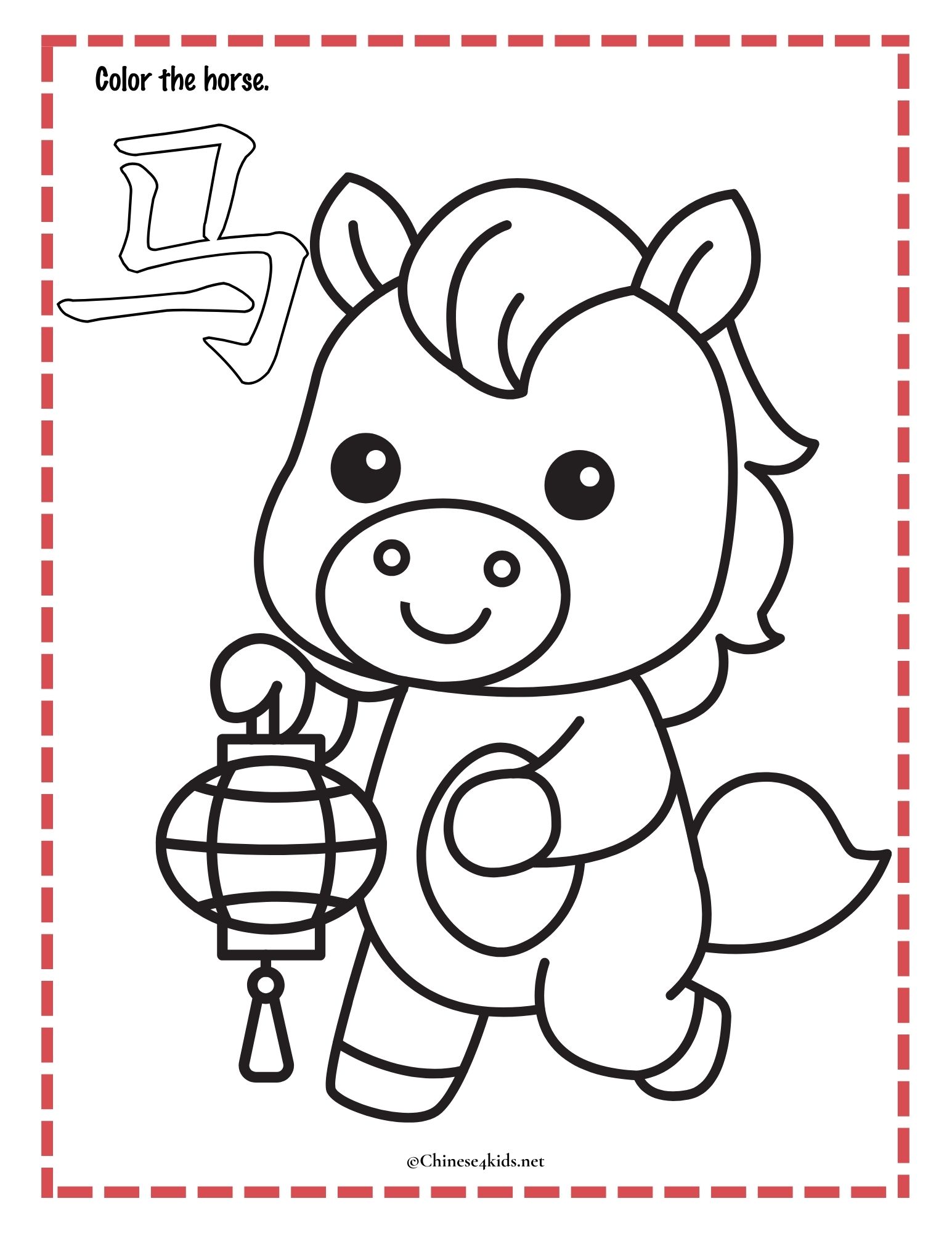 - Color, trace and write Chinese character of a horse (马)