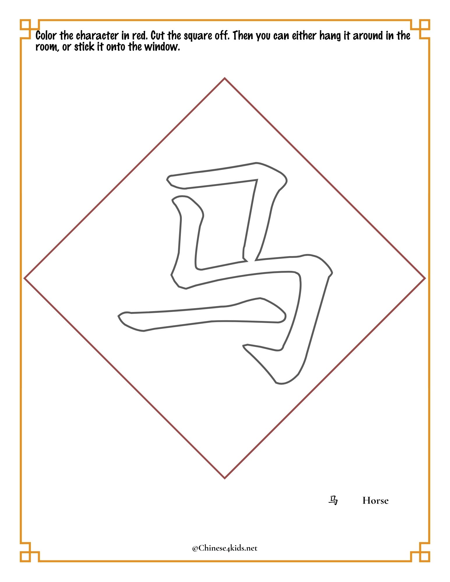 - Chinese lucky words (福,春,马)color and cut activity worksheets